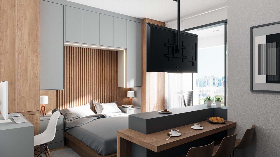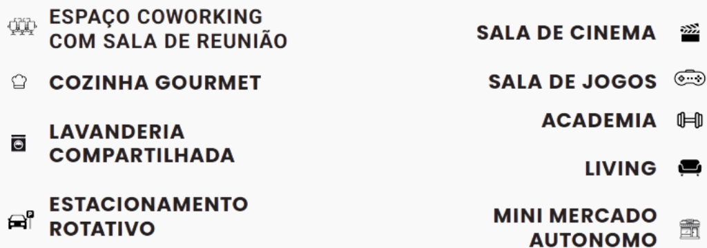 Cada ambiente foi cuidadosamente pensado para proporcionar mais praticidade no dia a dia, reunindo diferenciais como coworking com sala de reunião, sala de cinema, sala de jogos, academia equipada, lavanderia compartilhada, mini mercado autônomo, dois elevadores e estacionamento rotativo. Todos os espaços serão entregues mobiliados, garantindo ainda mais comodidade desde o primeiro dia.